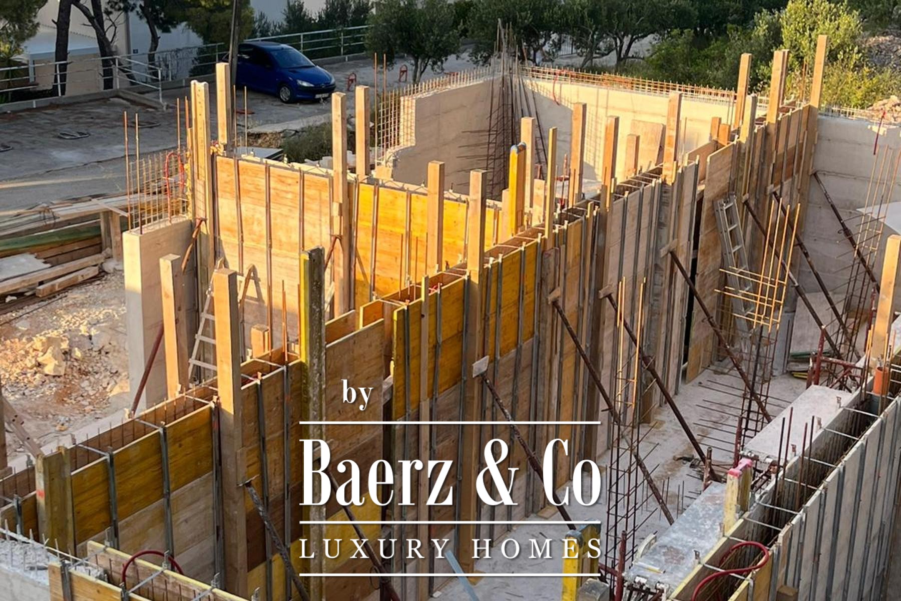 For sale is a multi-residential villa in a rough-construction (roh-bau) stage, located in the third row from the sea in Sutivan on the island of Brač. The total living area is approximately 360 m², and the property sits on a 494 m² plot.The property is designed as two residential units, each with approximately 180 m². One is oriented to the northeast, and the other to the northwest. Each unit has a ground floor with a garage, laundry room, and an additional room that can be customized according to the future owner’s needs. The first floor features a kitchen with dining and living areas, a terrace, one bedroom, and a bathroom. On the second floor, there are three bedrooms, each with its own bathroom and a spacious balcony.In total, the house has eight bedrooms and eight bathrooms,