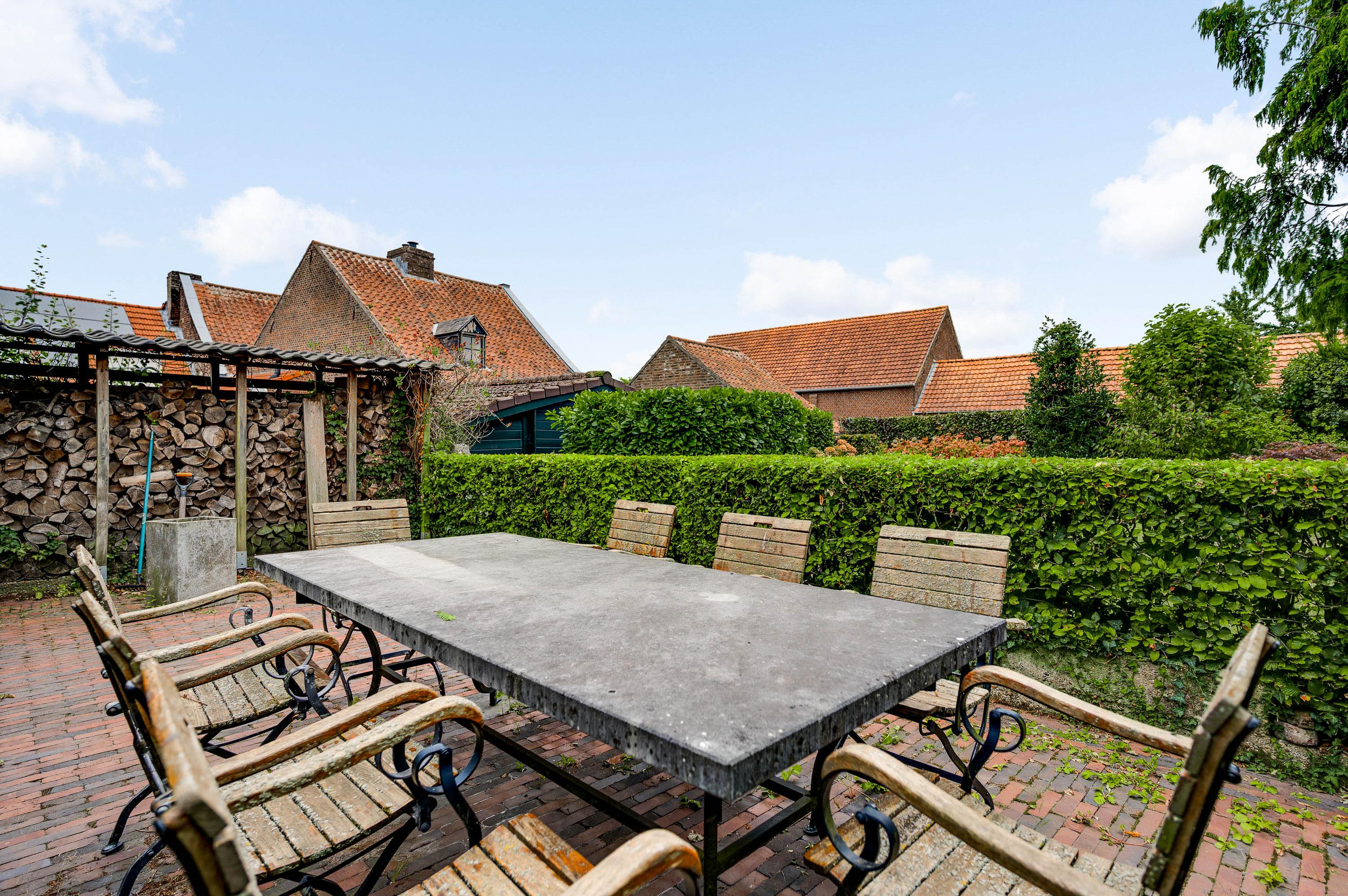 The garden seamlessly blends in with the house and offers plenty of privacy, despite its central location in the historic town center. The back garden is accessible via a private rear entrance and features several patios – one of which is covered – a lawn, and attractive flower beds.