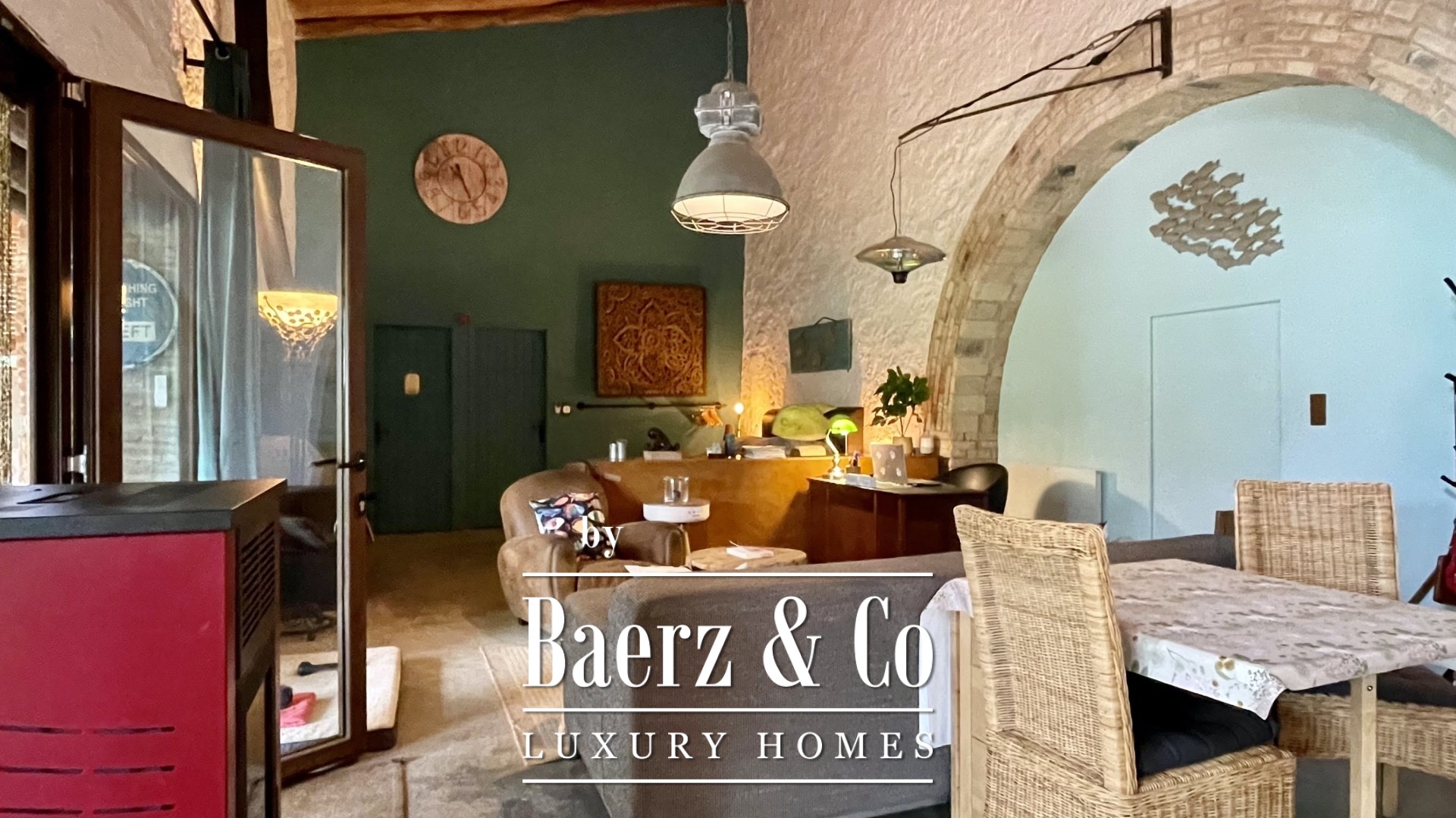 At its core, the 16th-century main house welcomes with a spacious, light-filled living and dining area, ideal for gatherings or understated events. The semi-industrial kitchen supports both domestic and professional culinary expression, while a wood-burning fireplace and carefully preserved features evoke a quiet sense of heritage. The main residence comprises six individually styled suites, each offering privacy and comfort. An additional ground-floor apartment brings flexibility to the living arrangement.