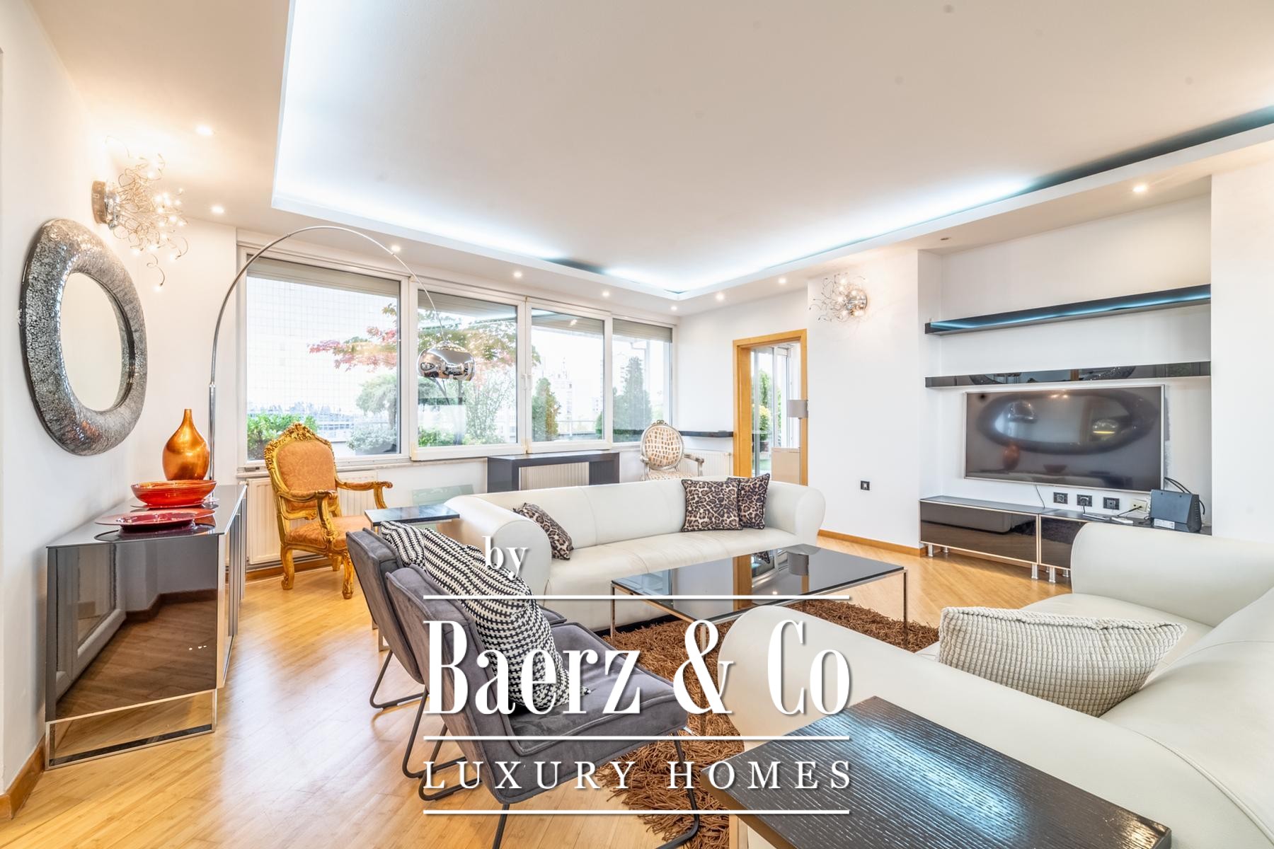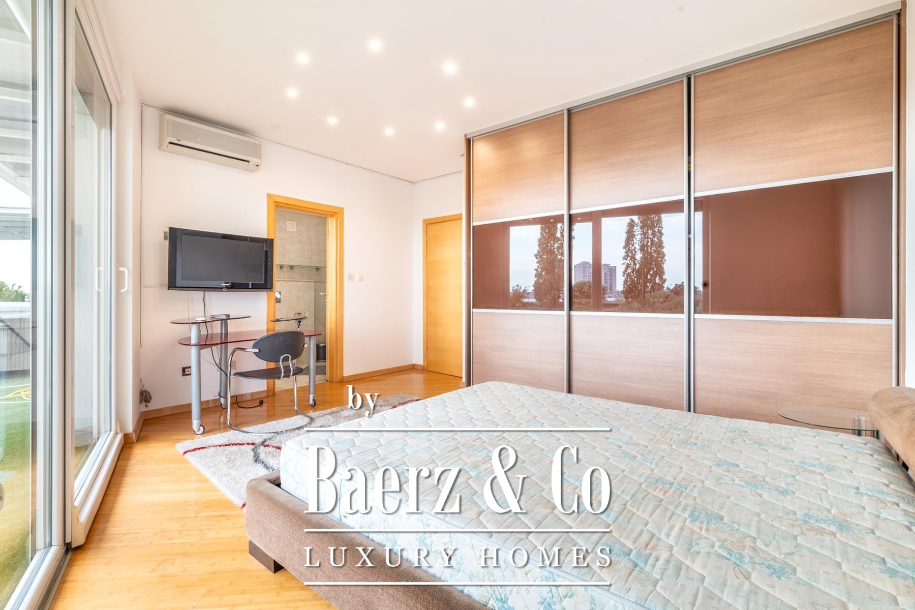 A legalized enclosed terrace has been thoughtfully reimagined as a serene 44 m² lounge, offering additional space for reflection or work. Fully air-conditioned interiors, laundry and storage rooms, as well as a guest WC, highlight both function and refinement.
