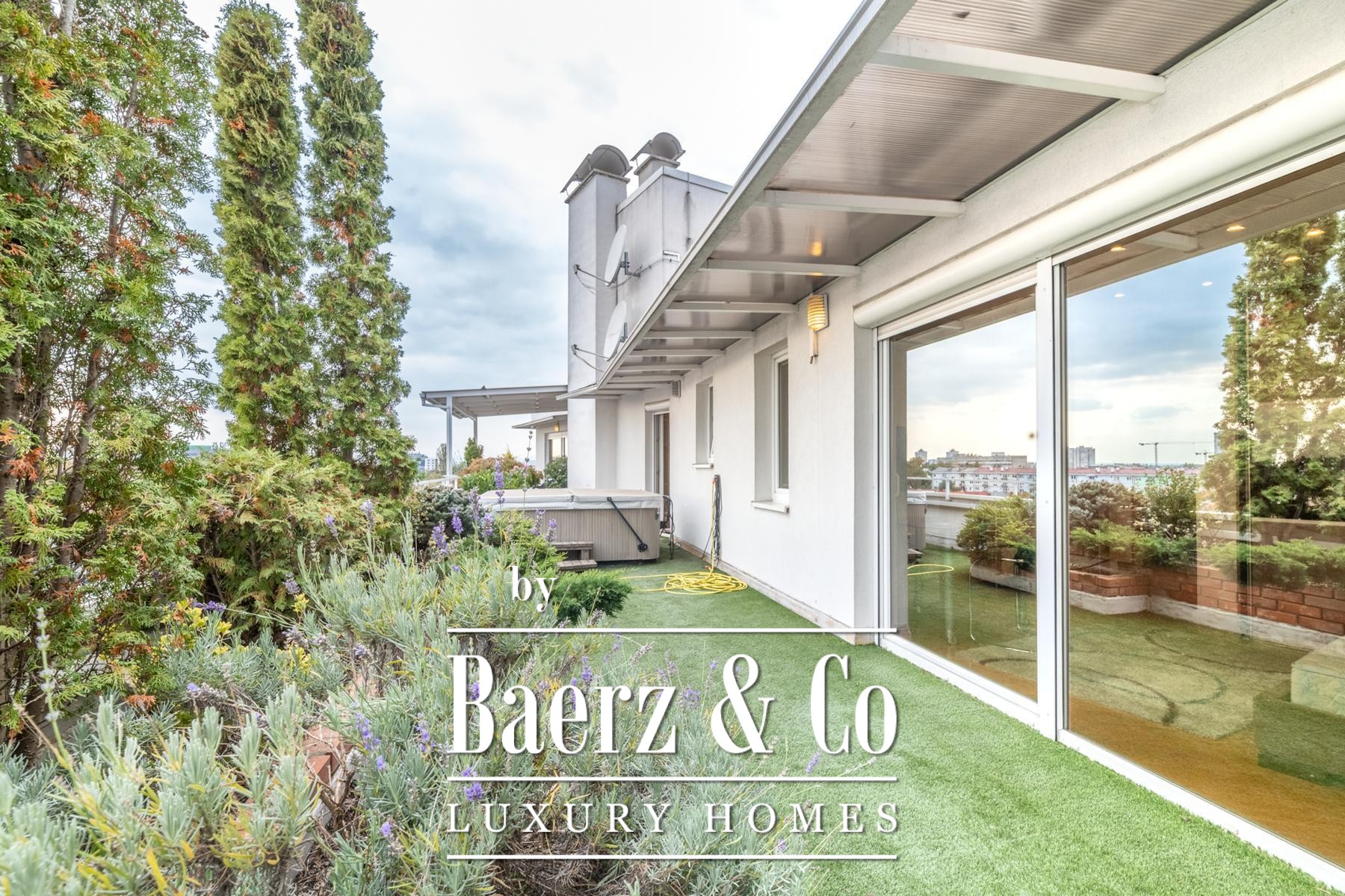 Penthouse Trešnjevka - Sjever is a rare offering in one of Zagreb’s most sought-after residential enclaves. This 356 m² penthouse occupies the entire sixth floor of a modern building completed in 2006, where an elevator provides direct entry to the residence and seamless access from a private 40 m² garage fit for two cars.