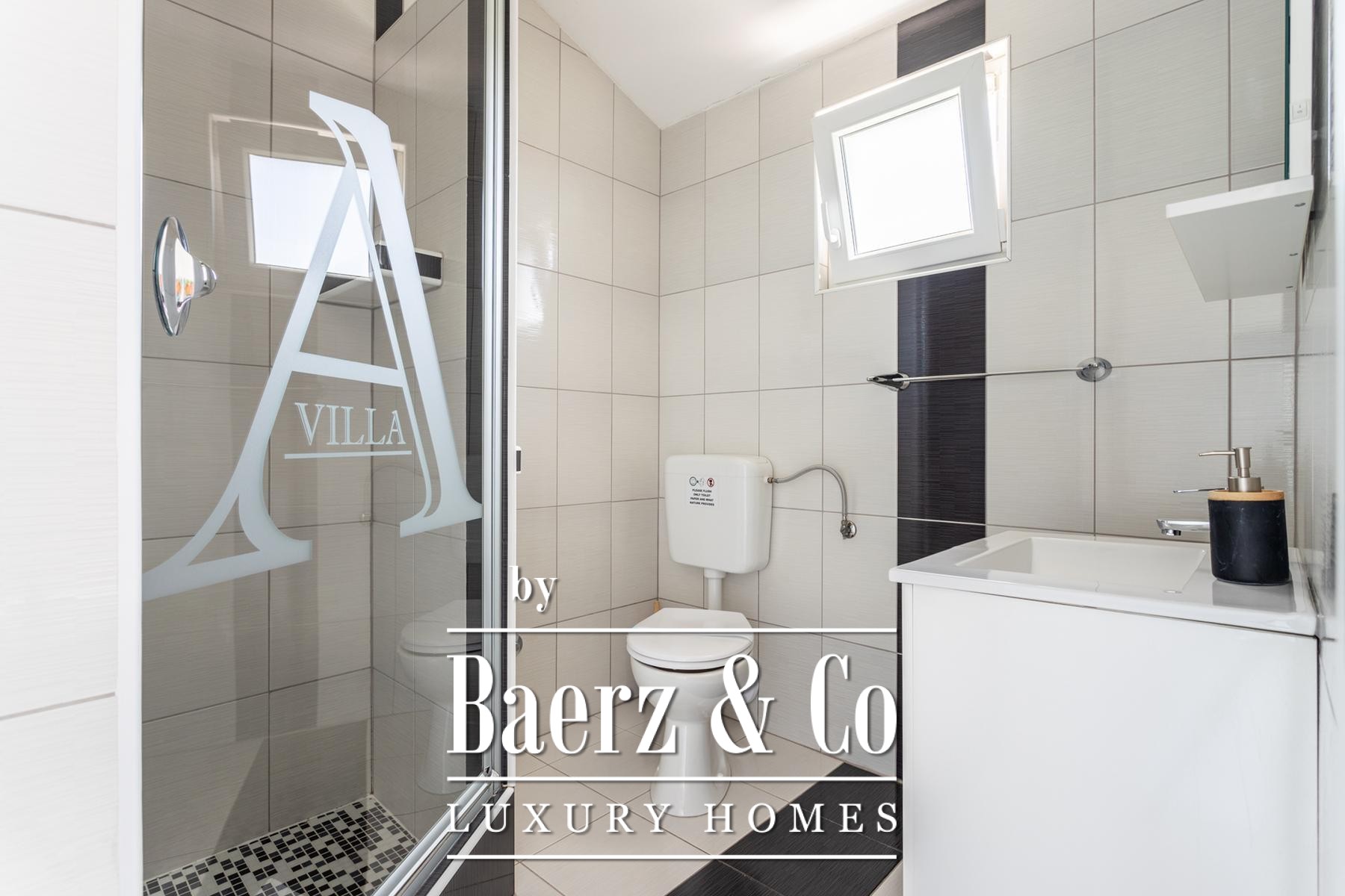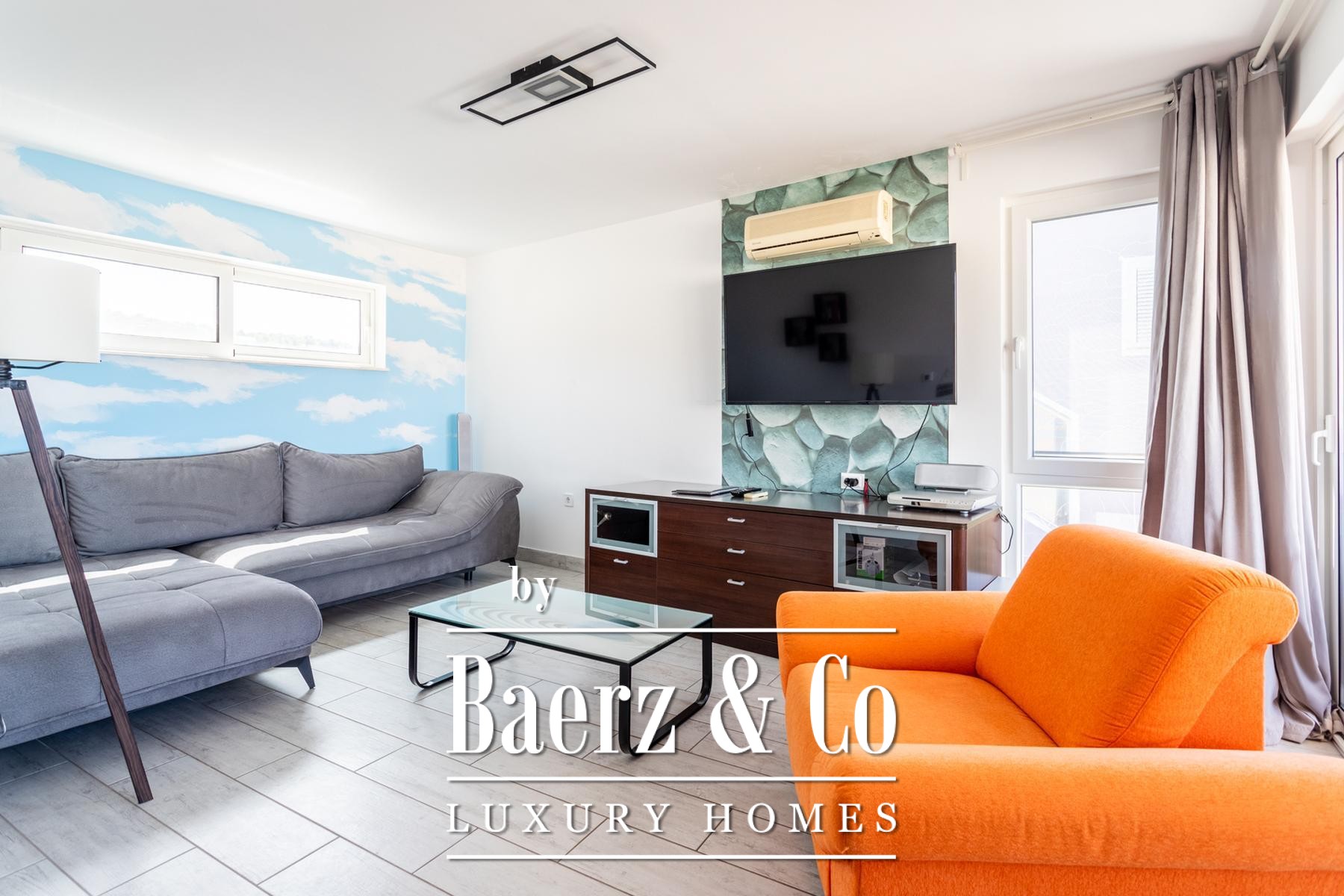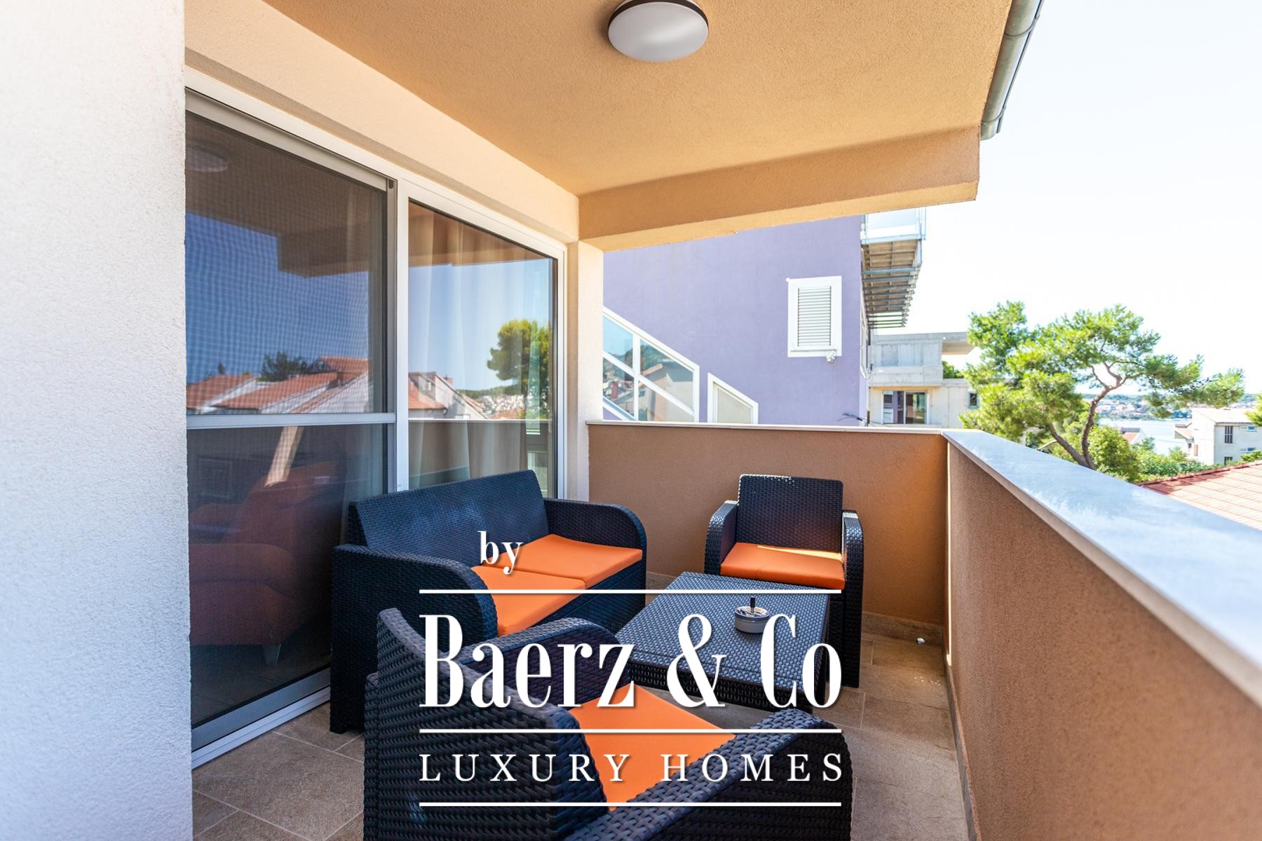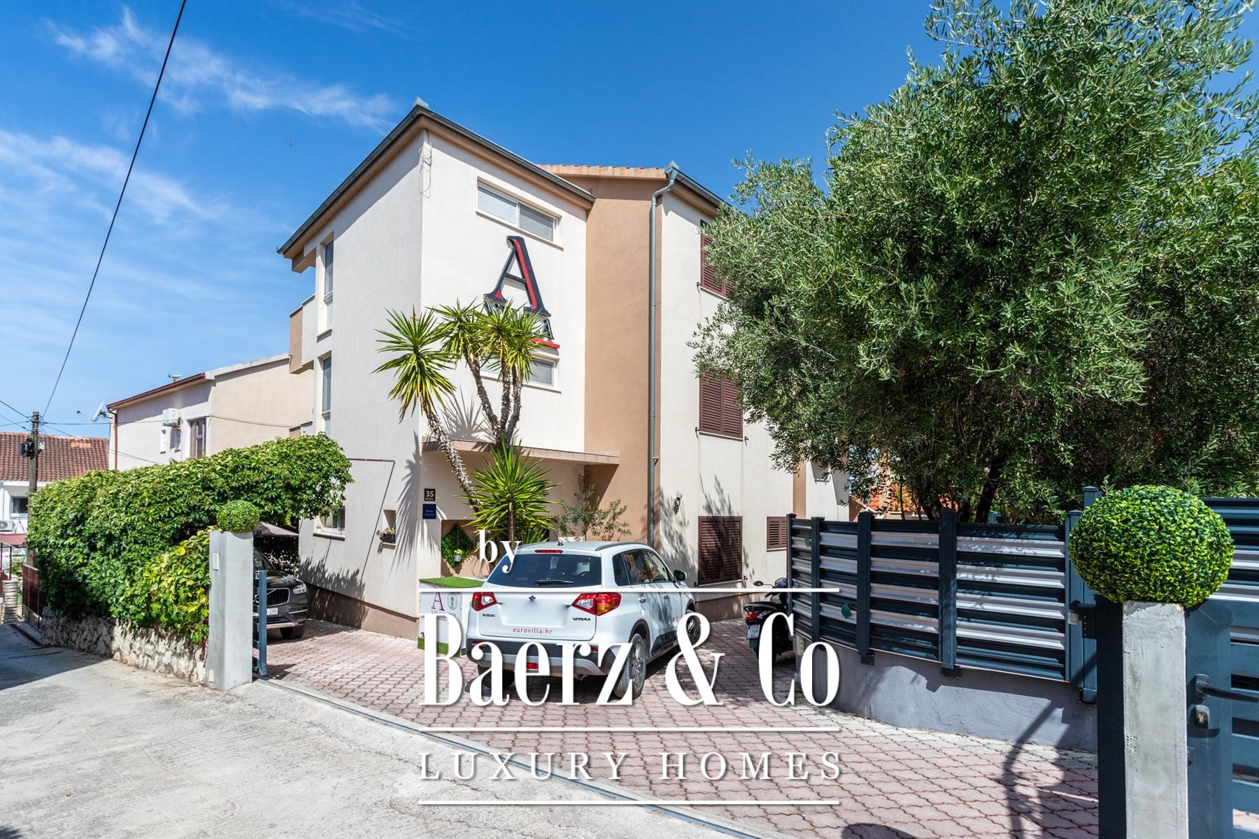 Čiovo, Okrug Gornji, just eighty meters as the crow flies from the sea and the beautiful beach, is located this fully furnished house with a swimming pool. It is located on a plot of 500 m2, and has three comfortable residential units.The basement floor is arranged as a small storage room and fitness room.The ground floor is essentially a two-room apartment, consisting of a storage room, hallway, two bathrooms, two bedrooms, living room, hallway, kitchen with dining room and terrace.The