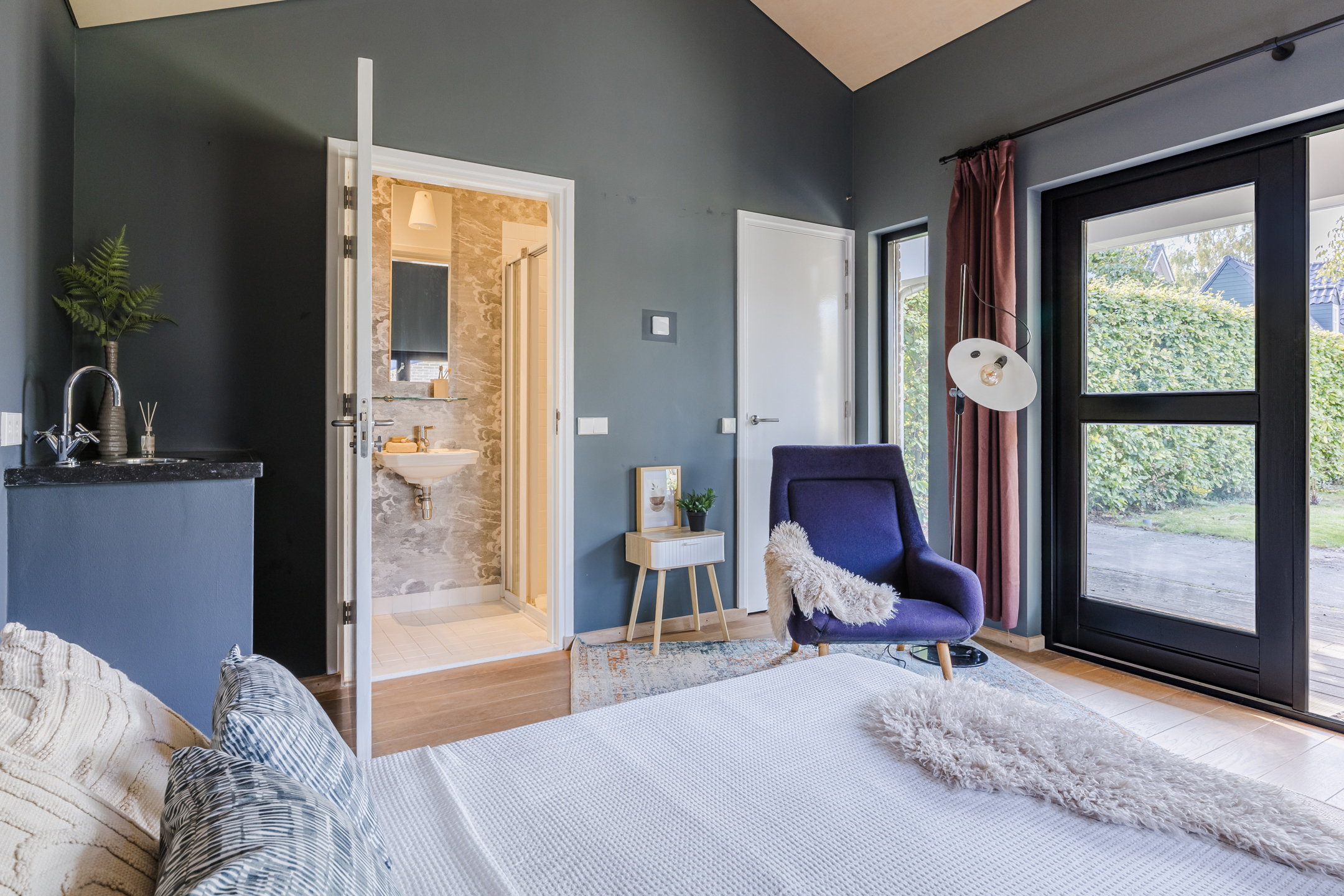 The modern, luxurious kitchen is both stylish and functional, offering generous space and beautiful views of the garden—perfect for relaxed dining. The kitchen is equipped with built-in appliances including a ceramic oven, combination oven-microwave, steam oven, American-style fridge (with water connection) and a Quooker tap. Provisions are also in place for a built-in coffee machine.