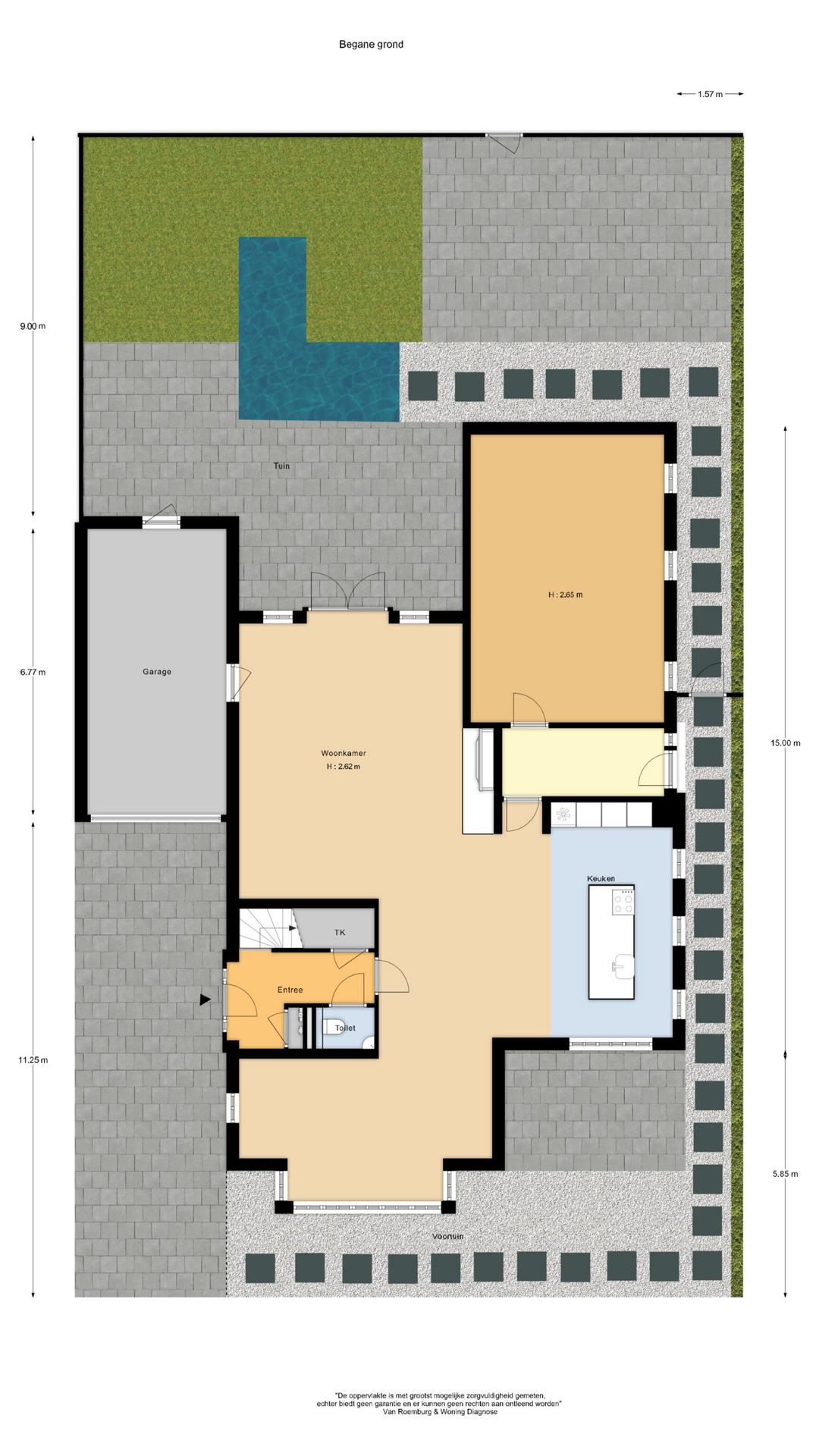 The garage is not only practical, with an electric roll-up door, water, electricity, and heating, but it can also serve as a workshop, storage, or hobby space.