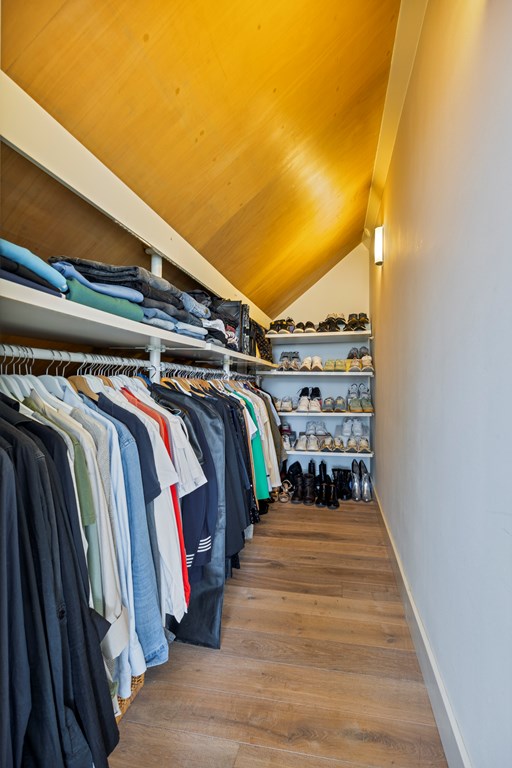 The bathroom is a showpiece: stylishly tiled, modern, and generous, with a bathtub, large walk-in shower, and double vanity.