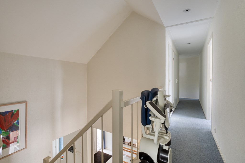 Via the fixed staircase in the hallway, you reach the first floor. Here you will find no fewer than four bedrooms, two bathrooms, and a practical storage room, making this floor highly functional.
