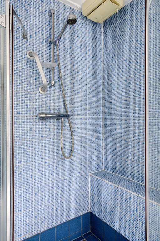 On this floor, you have access to two fully tiled bathrooms. The first bathroom is equipped with a bathtub, a shower, and a double washbasin, making it ideal for families. The second bathroom features a washbasin and a shower cabin. Both bathrooms are in good condition but also offer the opportunity to be modernized to your own taste.