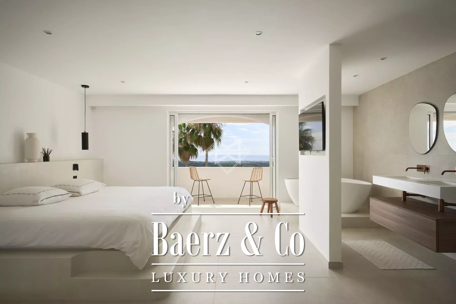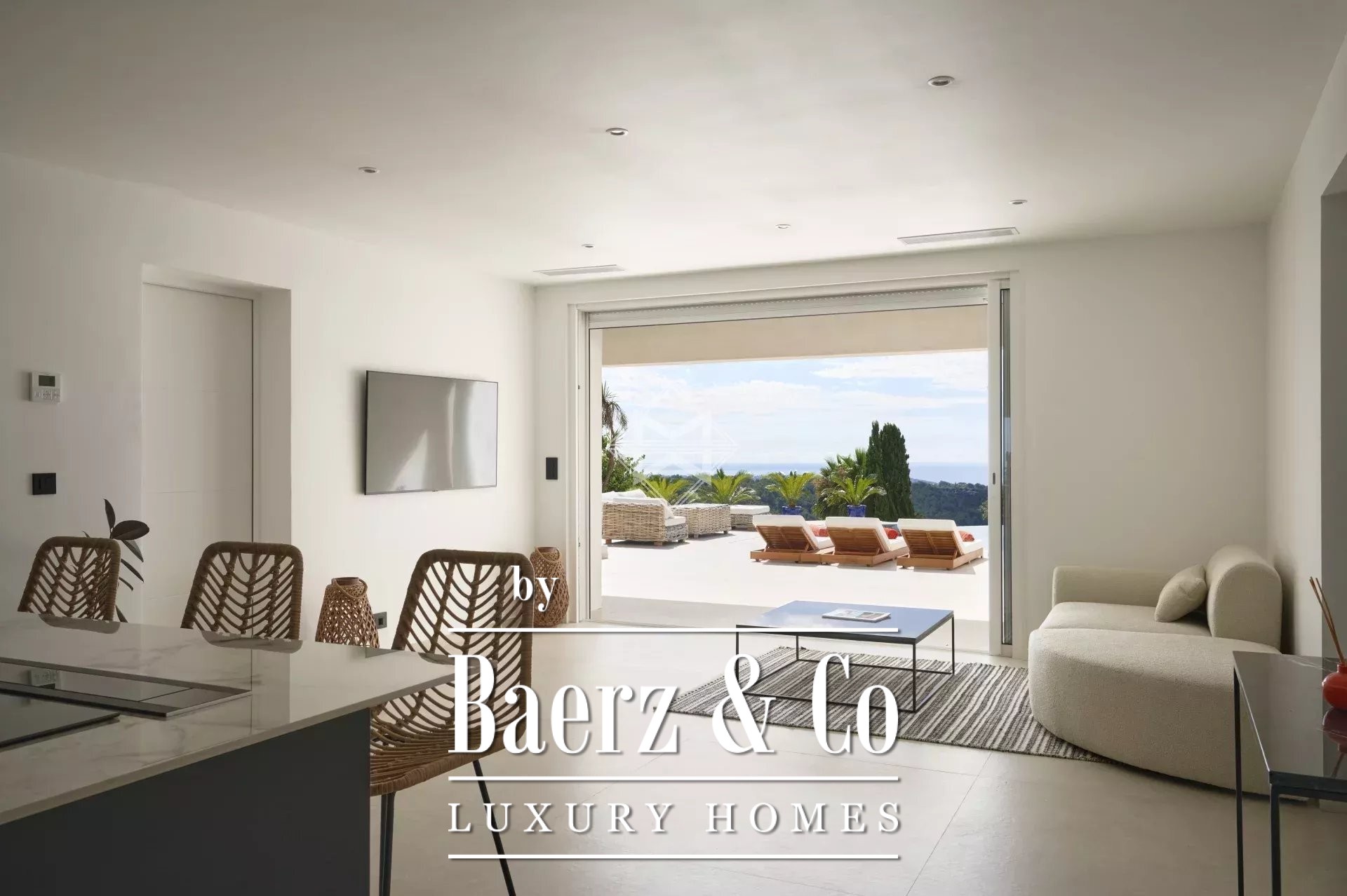 Set across three luminous levels, the villa defines understated elegance. Enter through a serene hall that leads into an expansive living area. Large windows draw the sea into the room, connecting seamlessly to a dining space and a generous kitchen. On this floor, two bedrooms, a bathroom, cloakroom, laundry, and guest toilet create a fluid, functional rhythm of everyday life. Ascend to the first floor to discover a 45 m² master suite, complete with a dressing room, en-suite bathroom, and an intimate terrace overlooking the Mediterranean panorama.