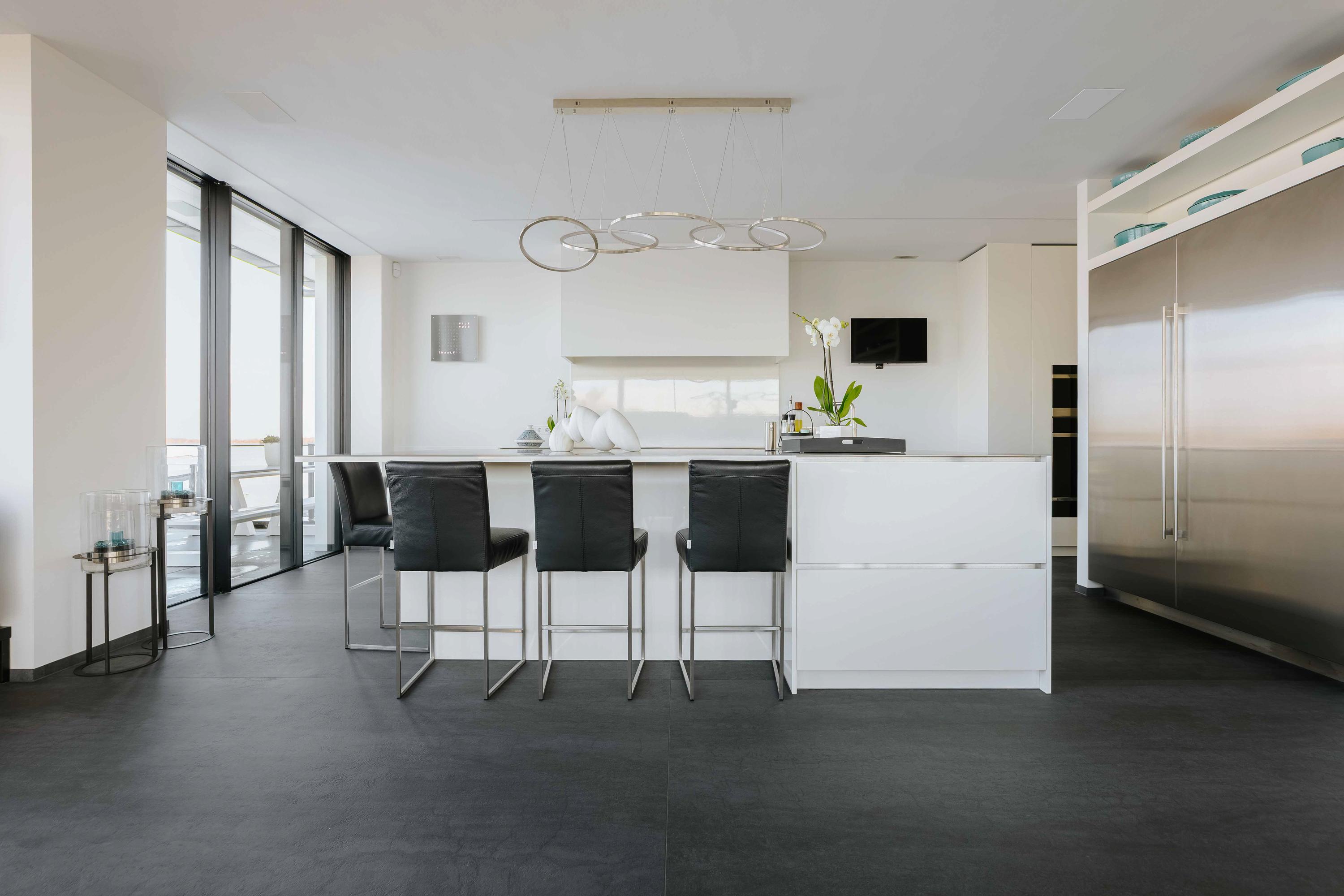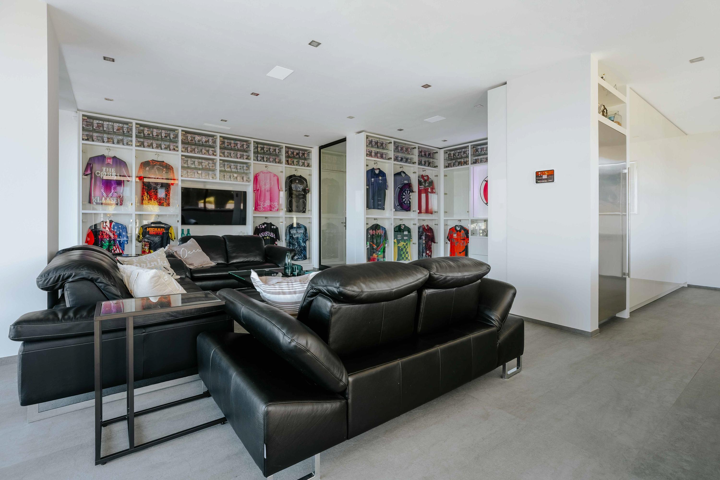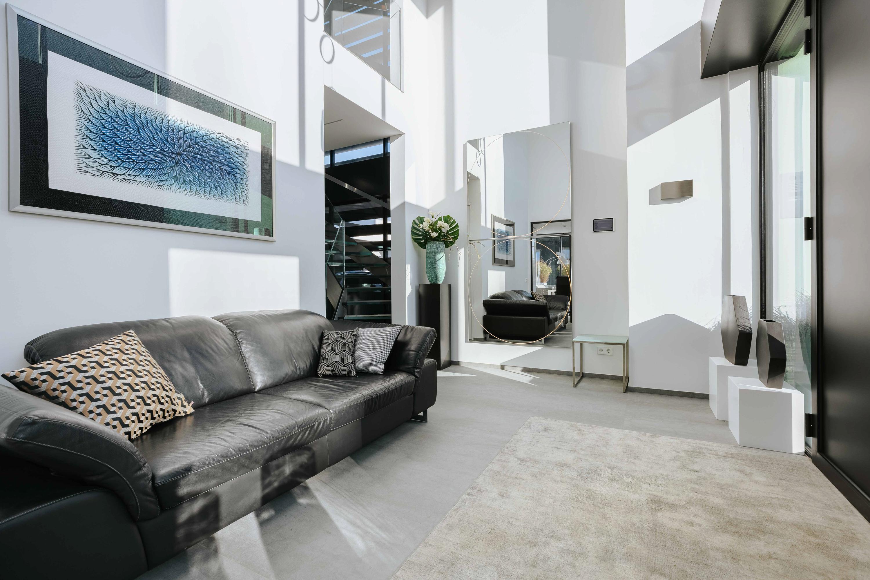 In addition to a representative entrance, the ground floor offers a gym and a study, which can also be used as bedrooms. There is also a spacious living/garden room with a luxury kitchen and direct access to the boathouse, swimming pool, and terrace.