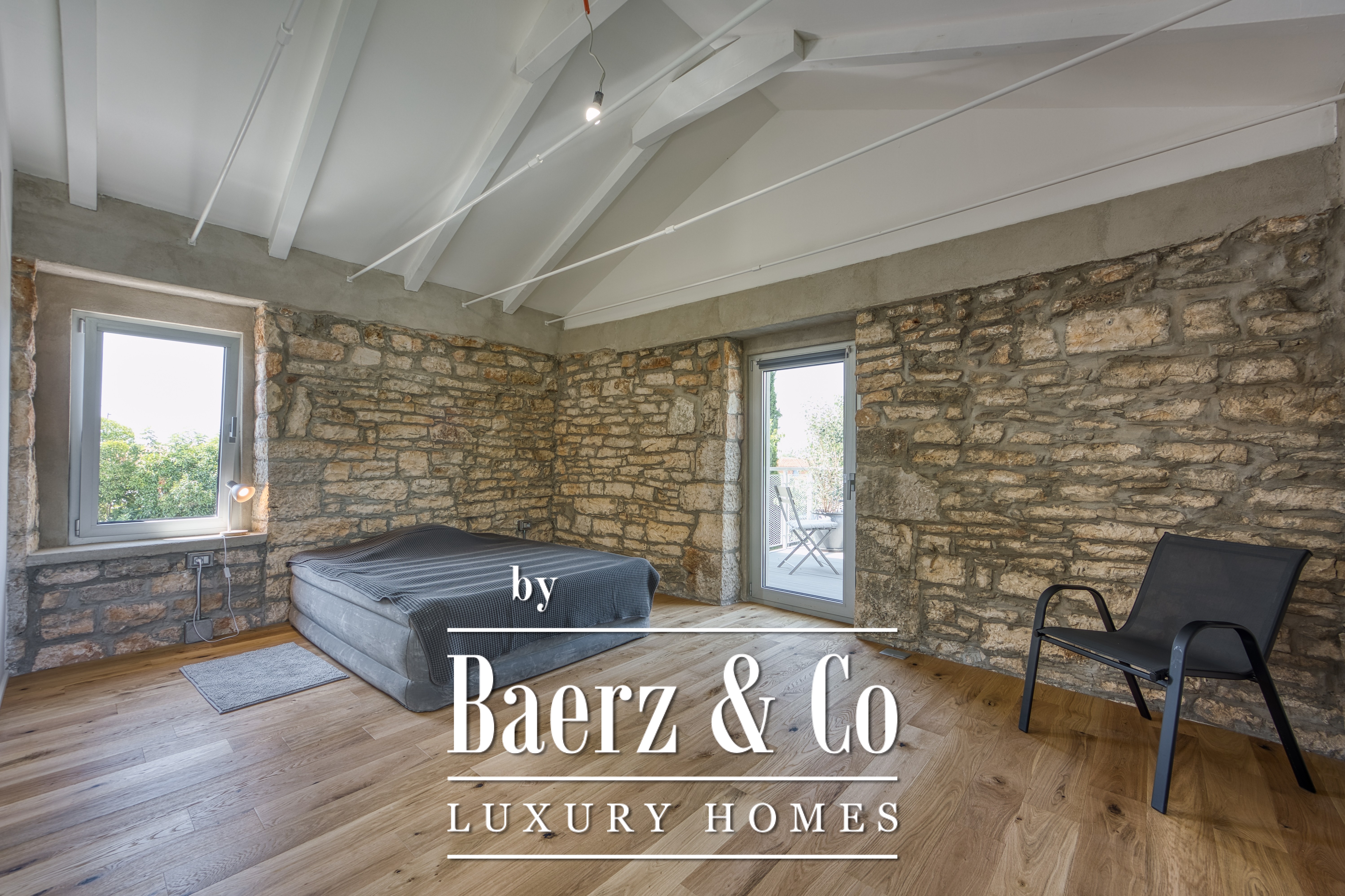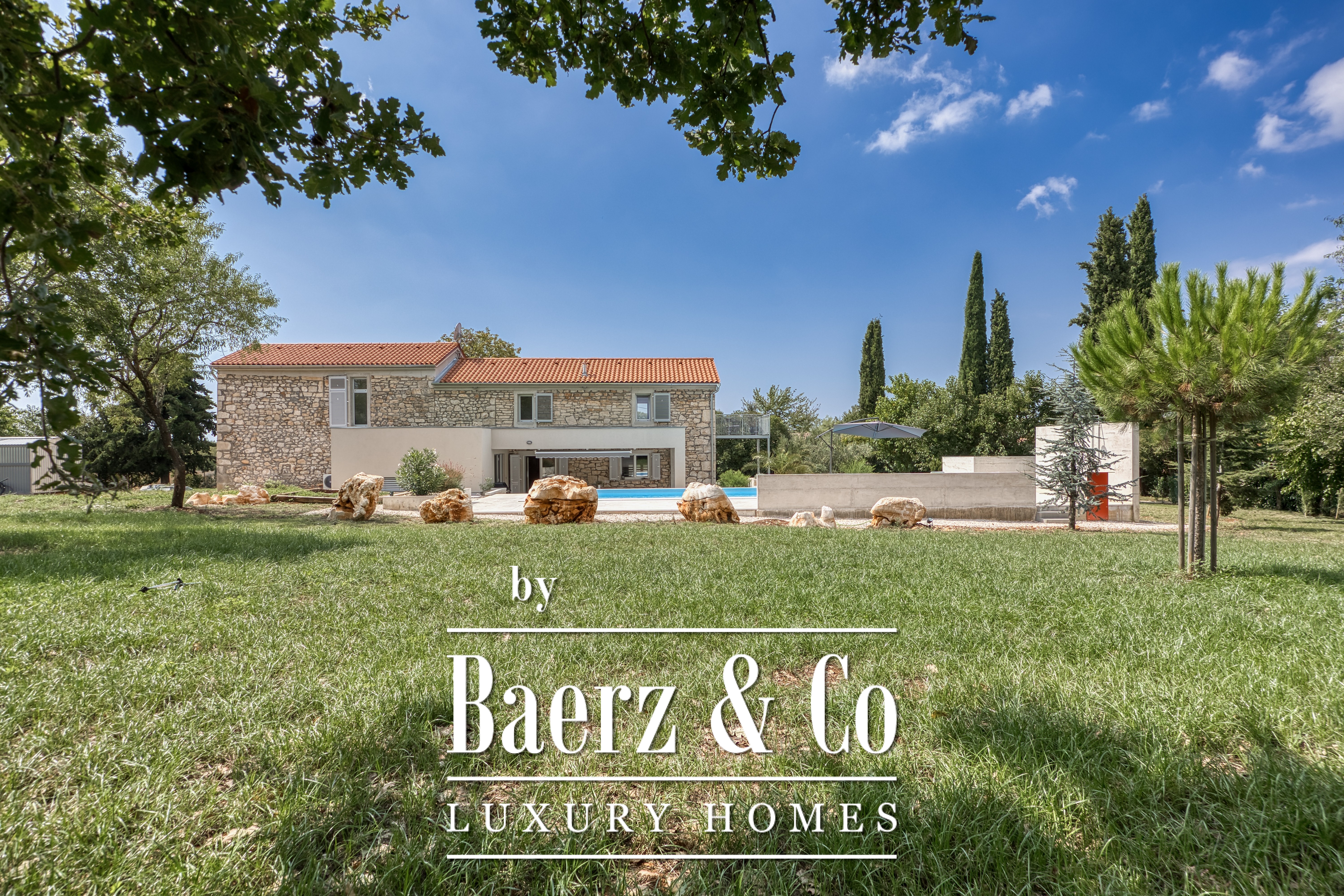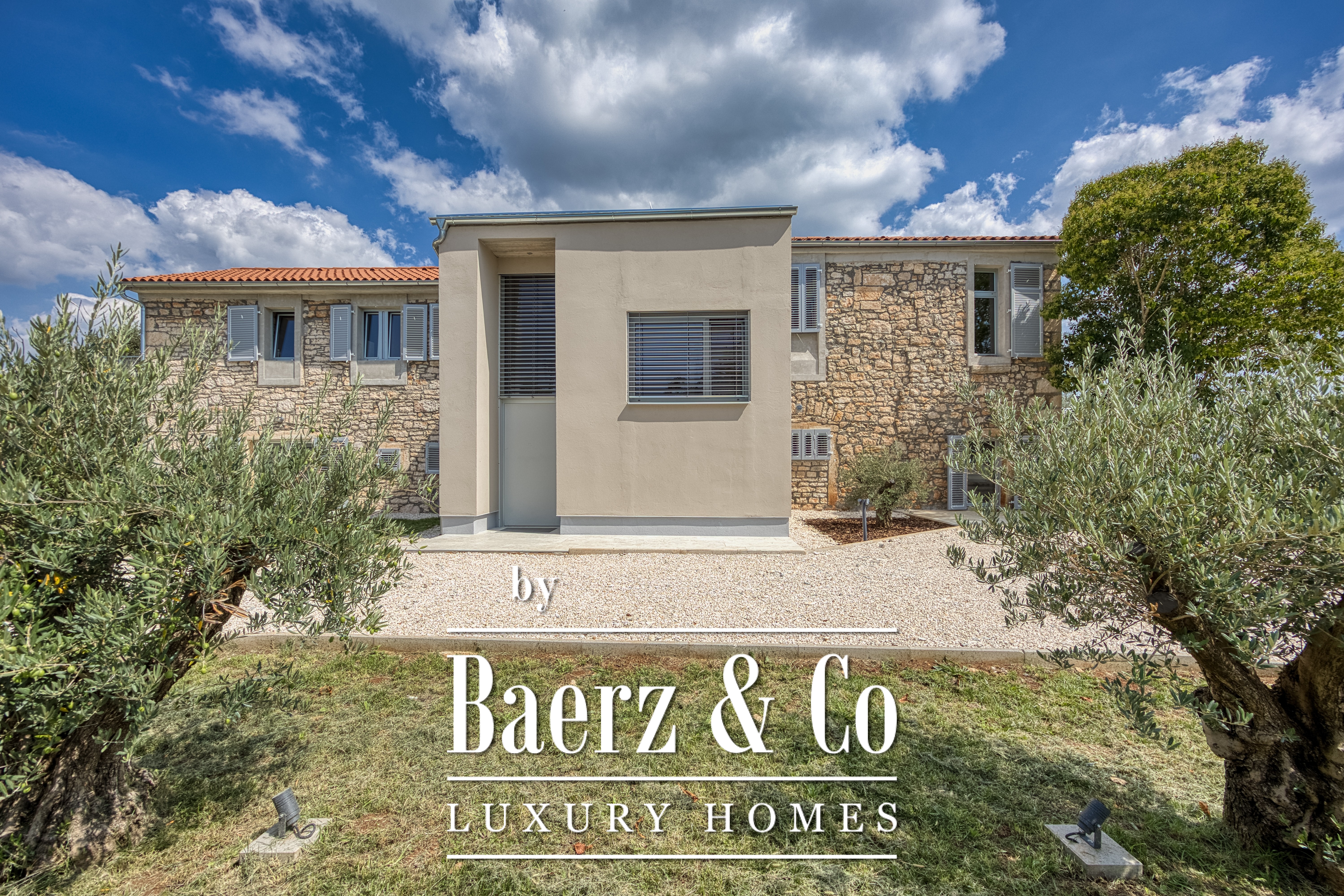 Near Višnjan stands a fully renovated stone house with 350 m² of living space, combining contemporary architecture, privacy, and prestige. The house was completely renovated in 2024 and built with high-quality materials, giving it a timeless character. It is designed to provide comfort and functionality throughout the year.