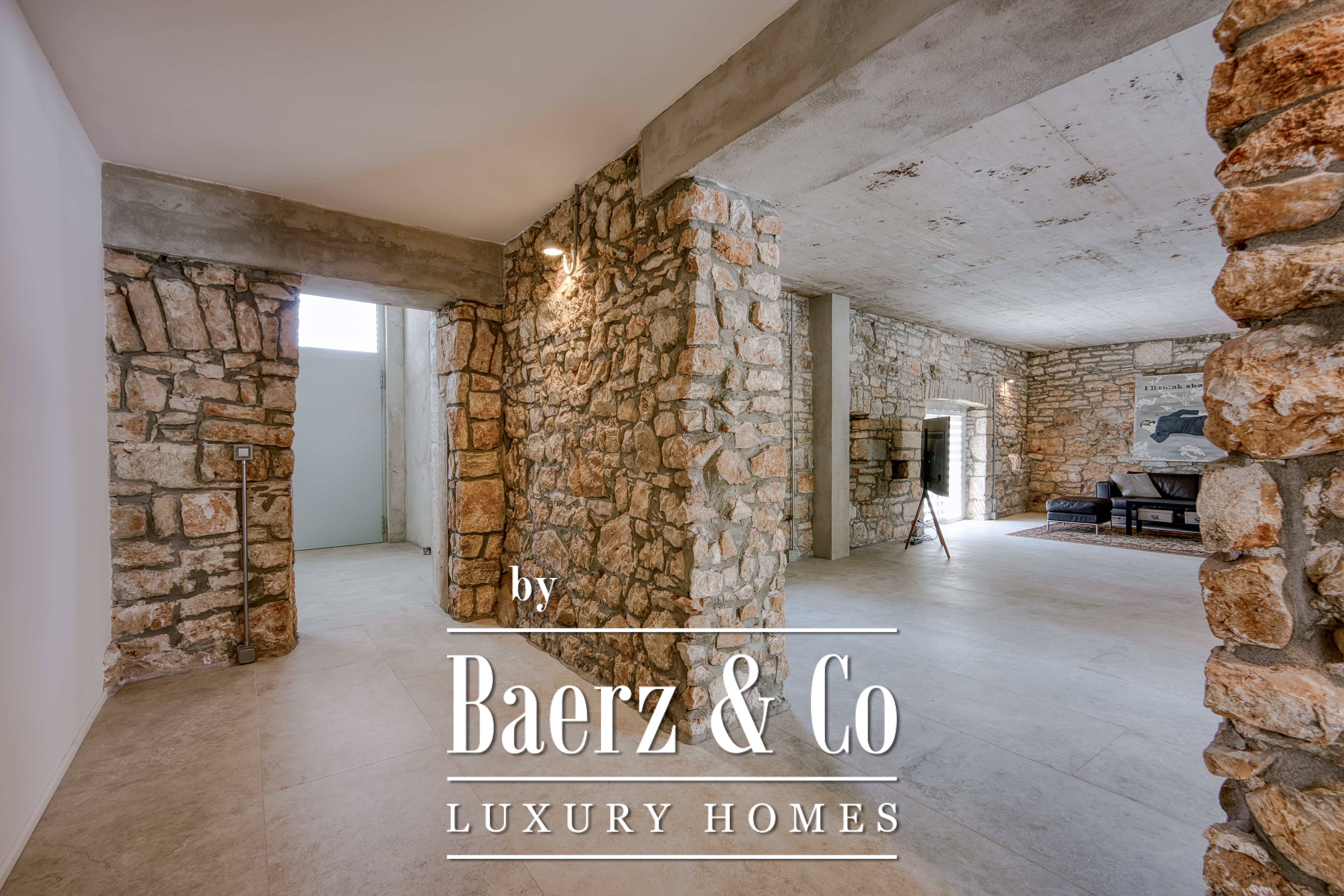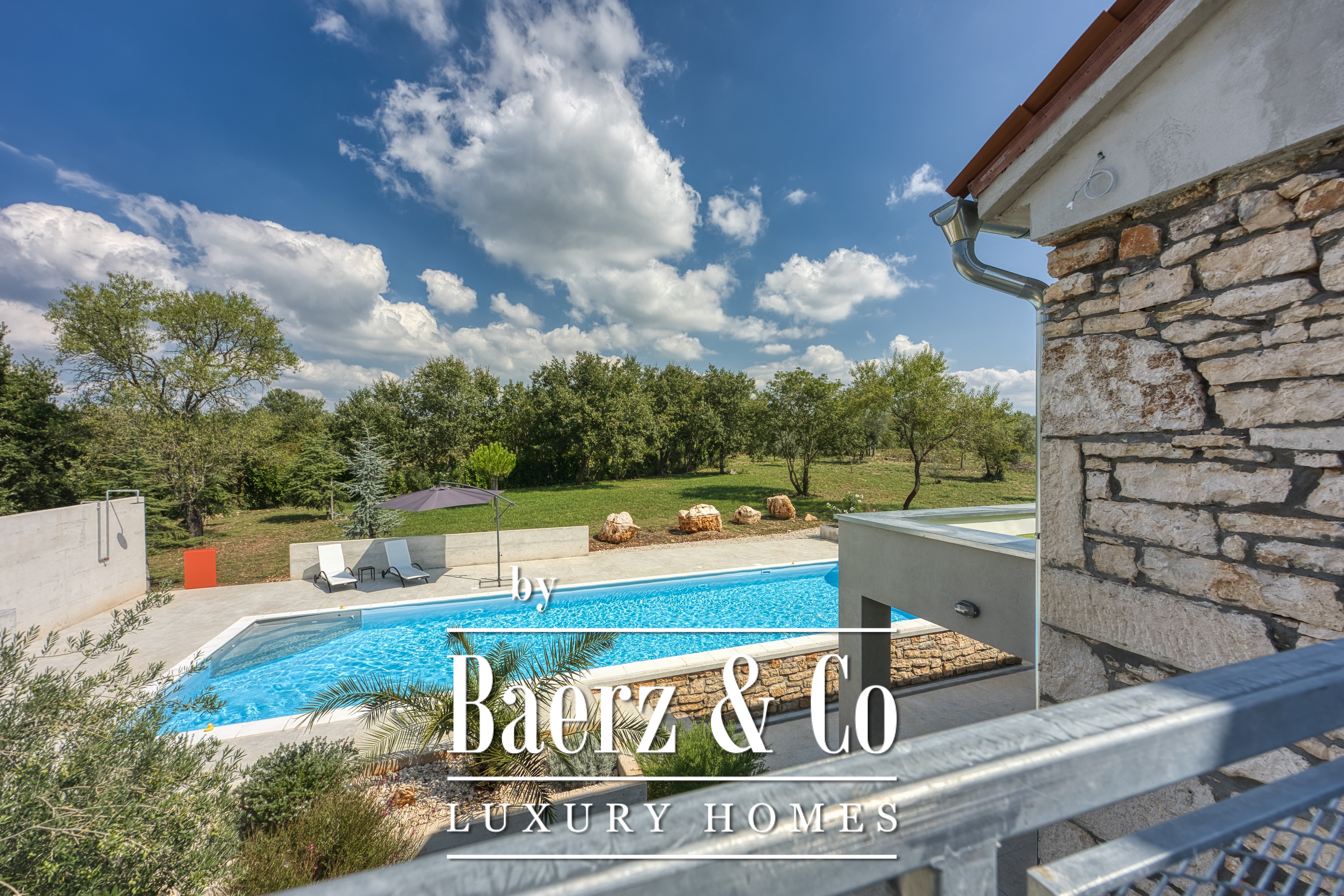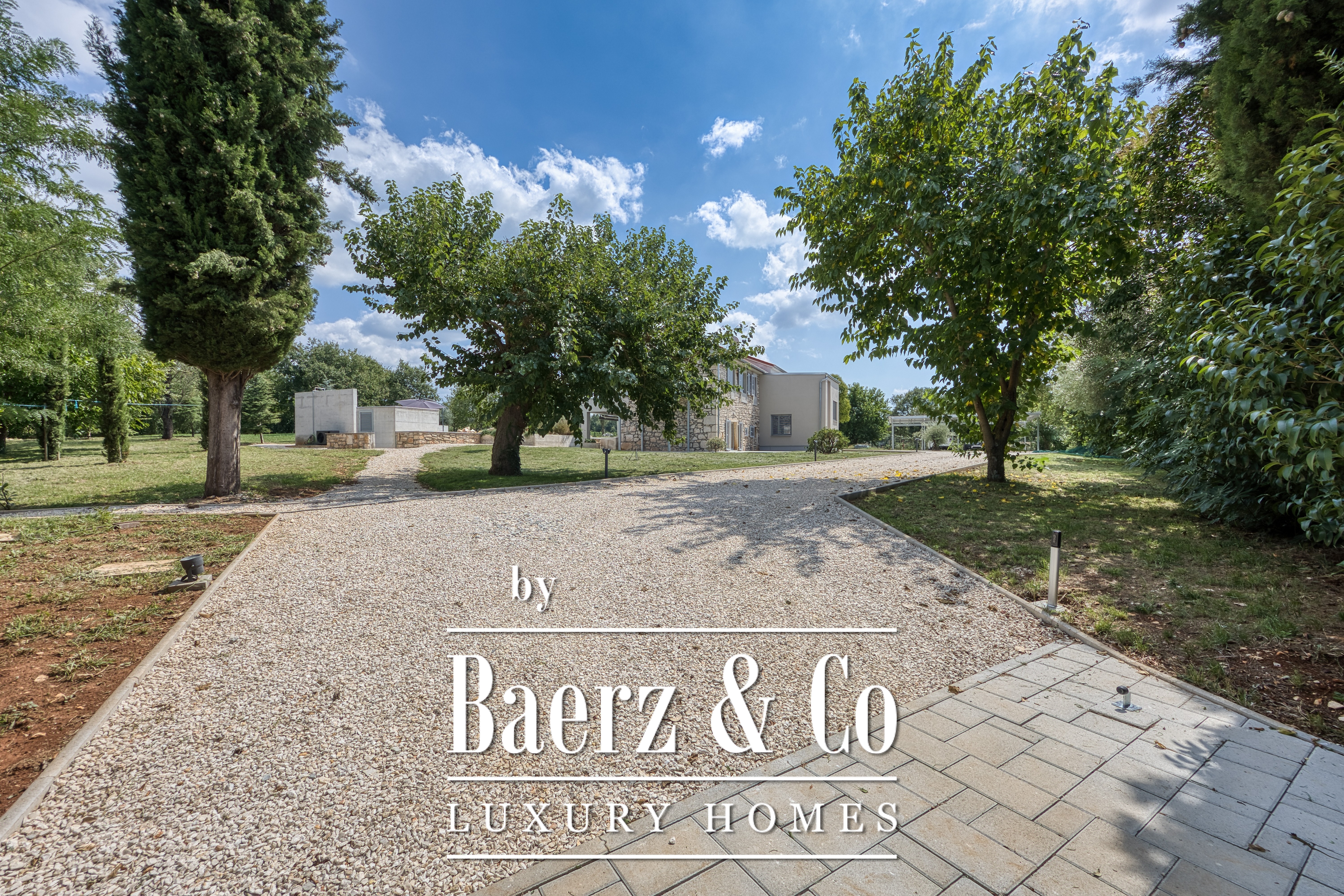 Near Višnjan stands a fully renovated stone house with 350 m² of living space, combining contemporary architecture, privacy, and prestige. The house was completely renovated in 2024 and built with high-quality materials, giving it a timeless character. It is designed to provide comfort and functionality throughout the year.