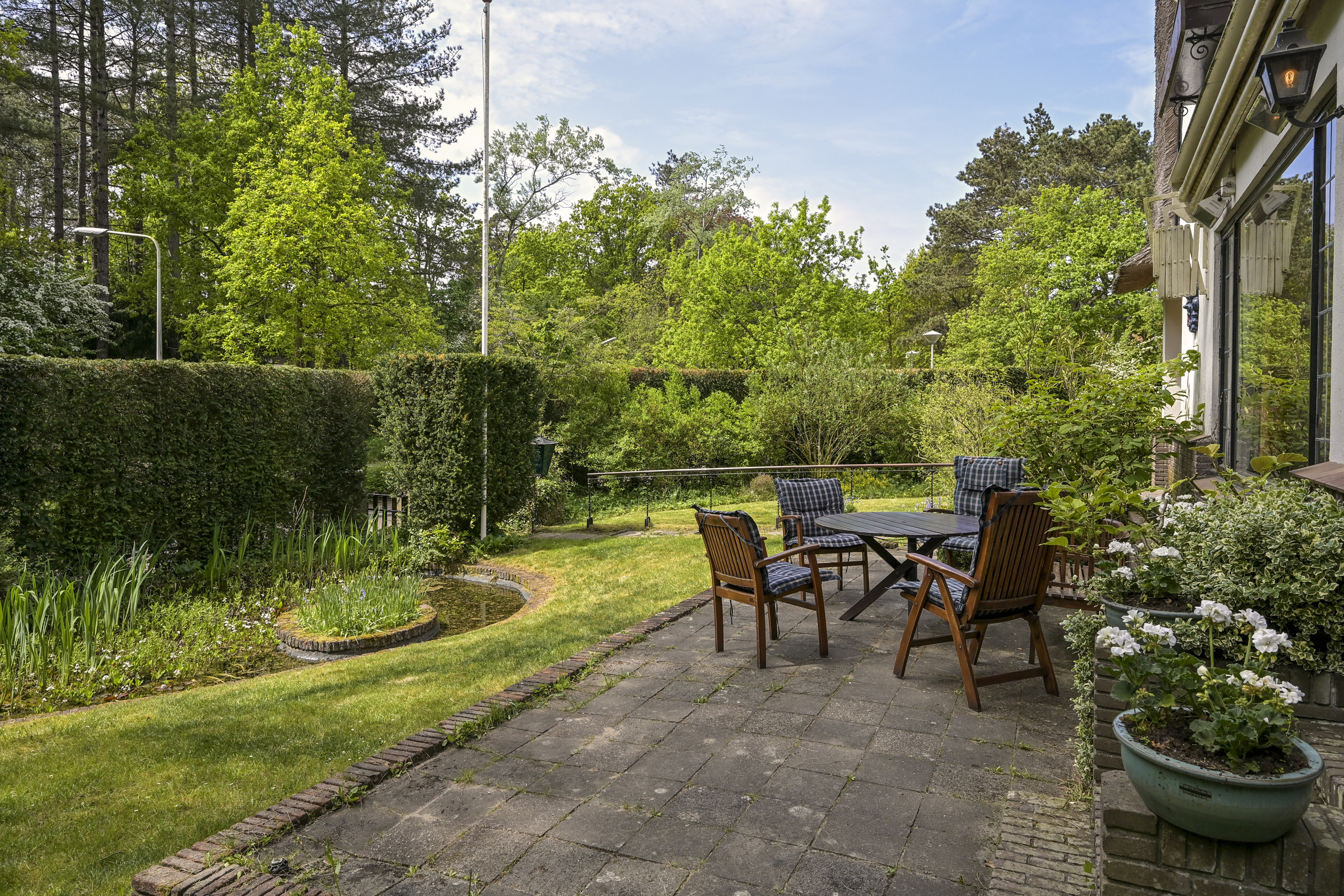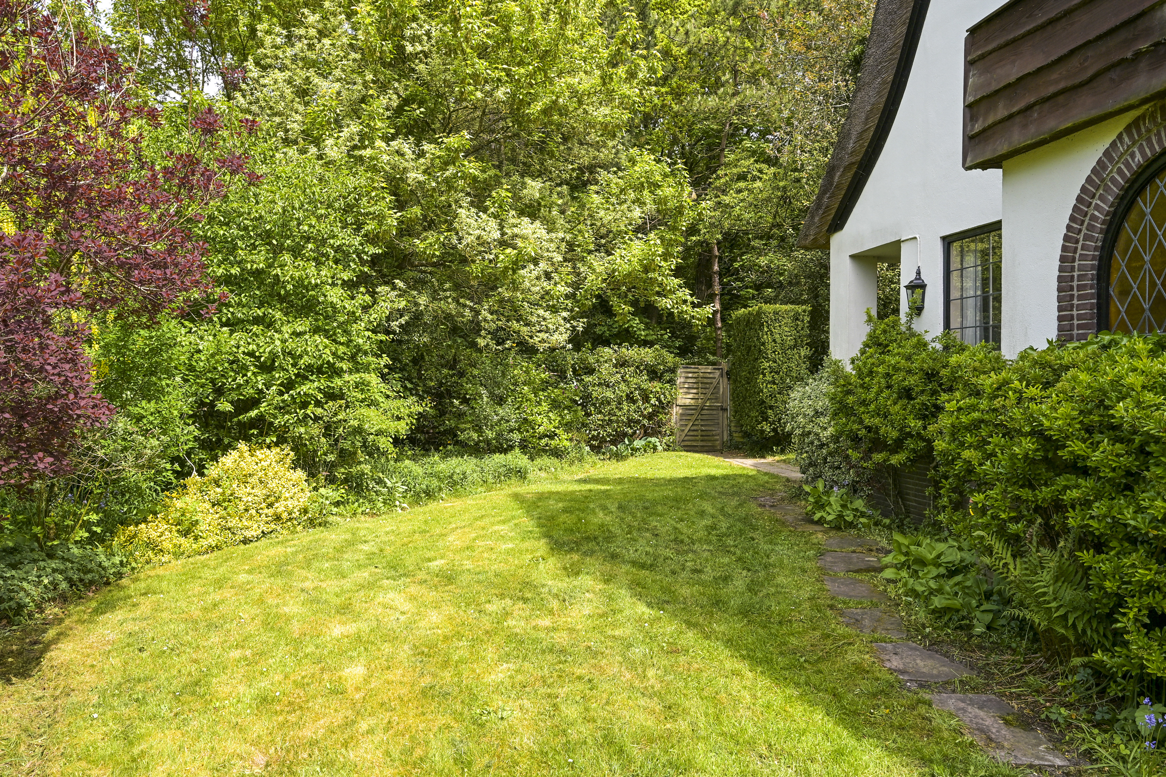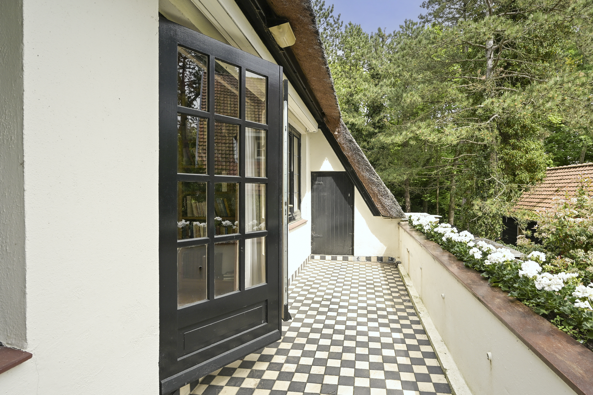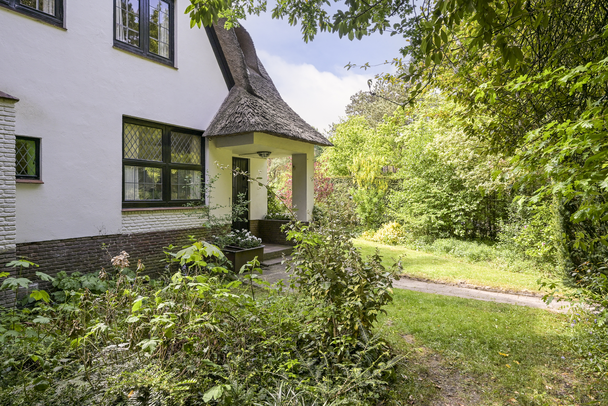 Detached villa Wassenaar offers a light-filled and charming residence, distinguished by its thatched roof and beautifully landscaped, sunny plot of 1000 m². The villa provides approximately 237 m² of refined living space, blending understated style with palpable warmth. Signature oak accents—seen in the solid front door, stair finishes, and parquet flooring—underscore a thoughtful attention to authentic materials and timeless design.