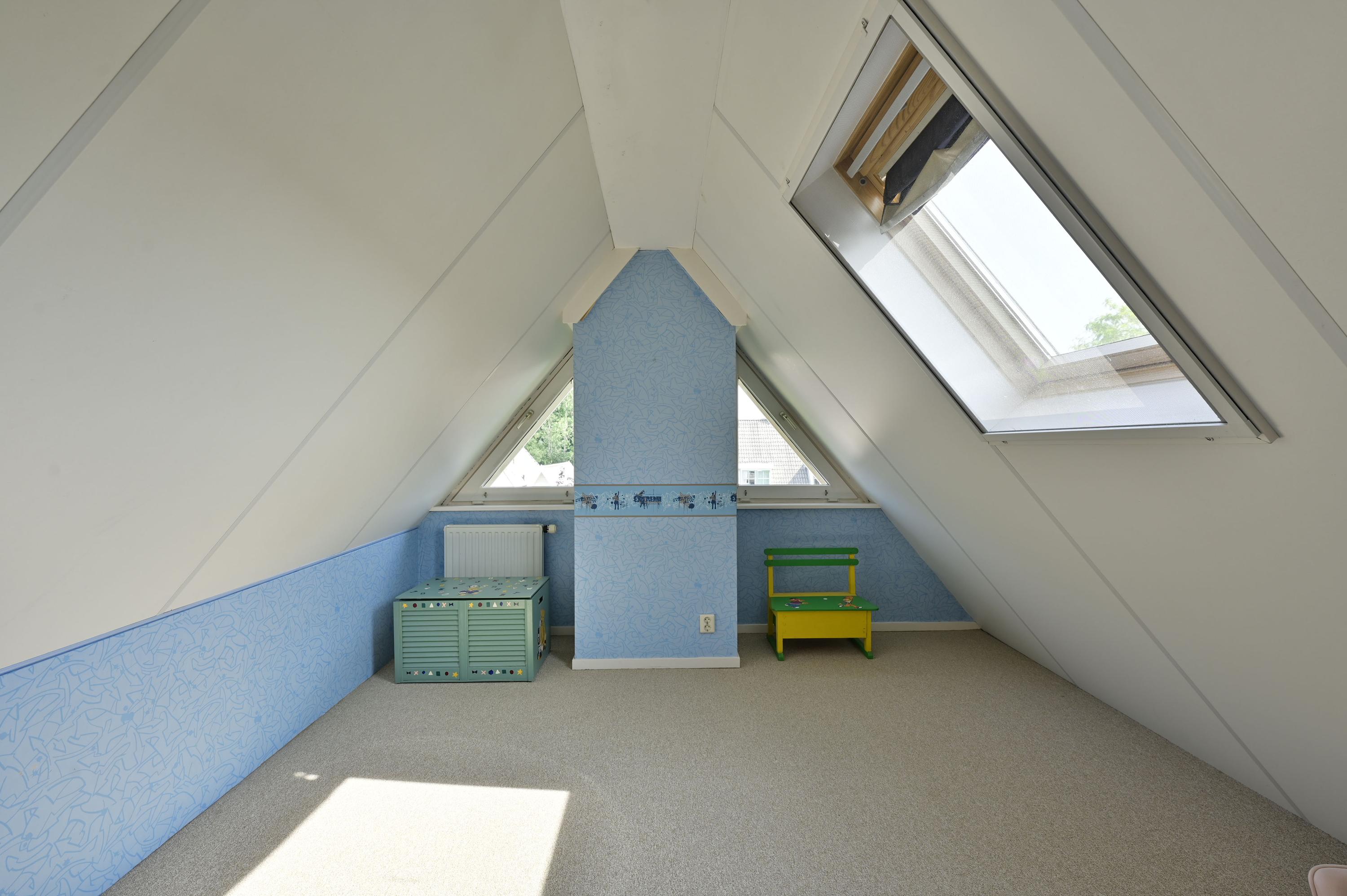 A spacious landing provides access to four generously sized bedrooms, all bright thanks to large windows. A separate toilet is also located on this floor. The luxurious bathroom features a broad dormer window and offers comfort with a bathtub, walk-in shower with glass screen, rain shower, hand shower, double washbasin, and underfloor heating.