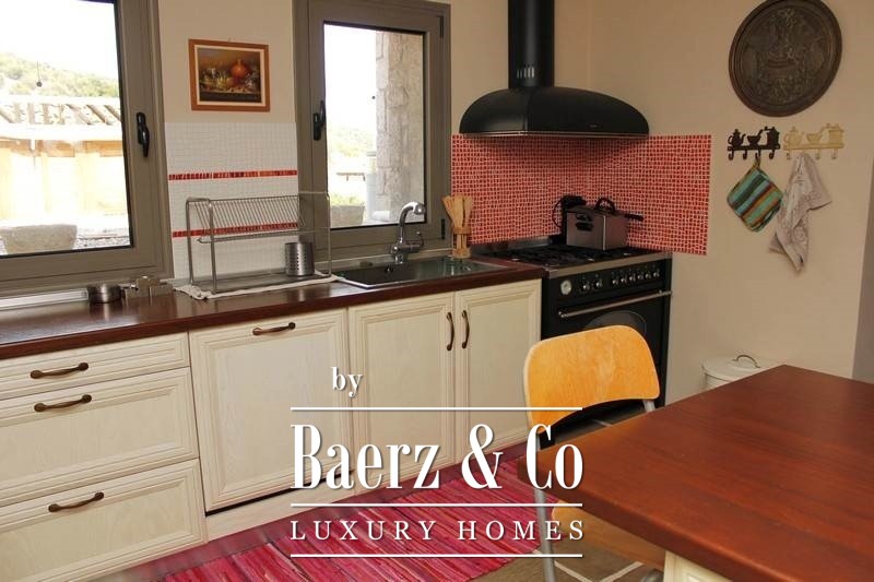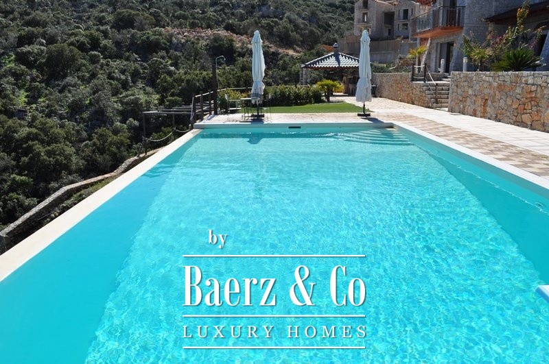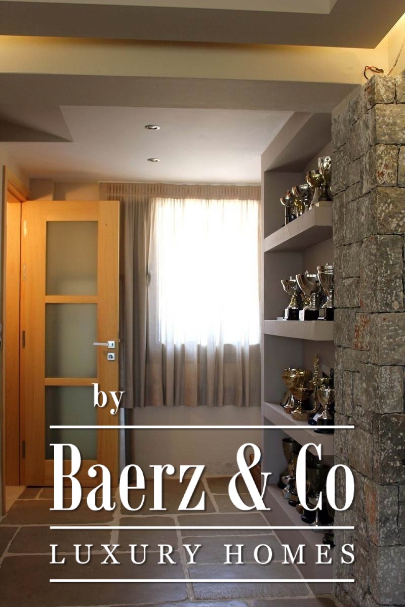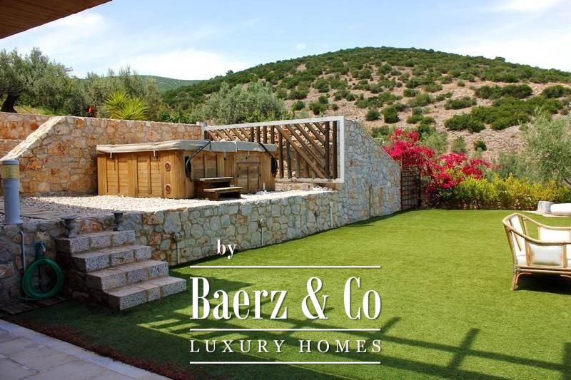 3rd level (60 sq m) hosts a special open-plan space with a fireplace, bathroom and balcony with a magnificent view. The house is sold fully furnished and equipped, has infrastructure for an elevator, 2 fireplaces, autonomous heating/cooling and thermally broken aluminum frames. The surrounding area is carefully landscaped and includes lush planting, as well as an impressive 72 sq.m. infinity pool, which enhances the character of the villa as an ideal relaxation haven. A house with a strong traditional character, special architecture and excellent, unobstructed sea view that can satisfy even the most demanding buyer.